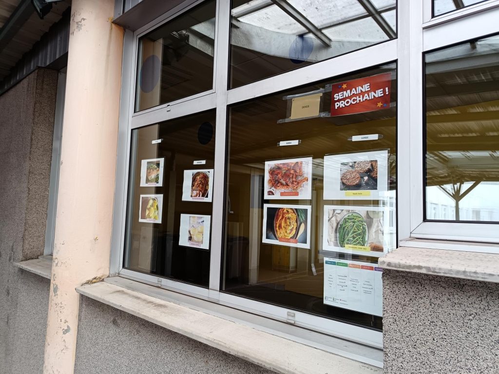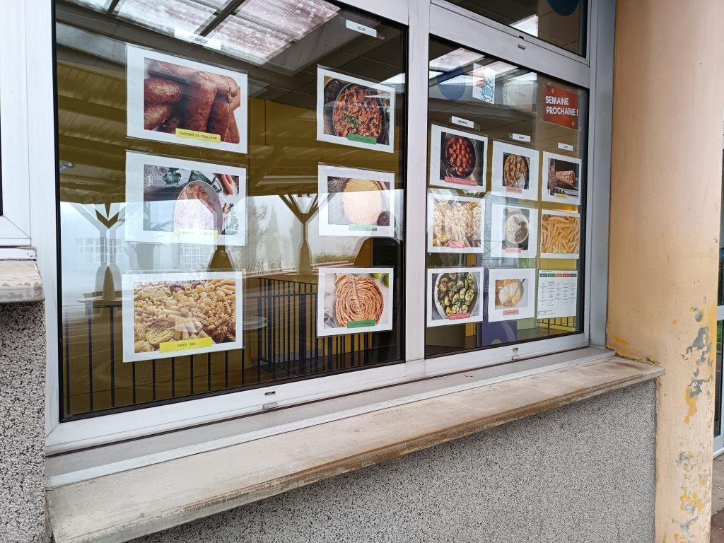Cette mise en œuvre du programme « lait et fruits à l’école » se décline aussi par un affichage sous le préau fait par un des cuisiniers, qui identifie par des photos les plats qui vont être servis pour la semaine ; ils sont ainsi rendus plus attractifs.