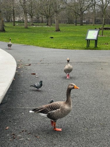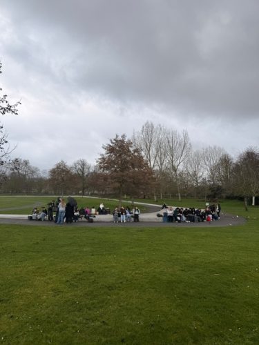 Le déjeuner s’est déroulé sous forme de pique-nique à Hyde Park, près de la fontaine mémorial dédiée à la princesse Diana. Malgré une météo pluvieuse, le groupe a gardé le moral et profité de ce moment en plein air. Le repas s’est fait en compagnie des oies et des écureuils du parc, venus grappiller quelques bouts de sandwichs et des miettes de chips autour de nous.