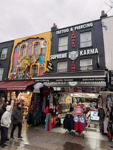 L’après-midi, nous avons pris la direction de Camden Town. Ce quartier emblématique de Londres est connu pour son atmosphère alternative et créative. Les élèves ont parcouru ses marchés et ses rues animées, célèbres pour leurs façades décorées, leurs boutiques originales et leurs stands variés : vêtements vintage, créations artisanales, objets insolites et spécialités culinaires du monde entier. Les plus aventureux ont également poussé la découverte jusqu’à la célèbre statue d’Amy Winehouse, devenue un point de repère du quartier.